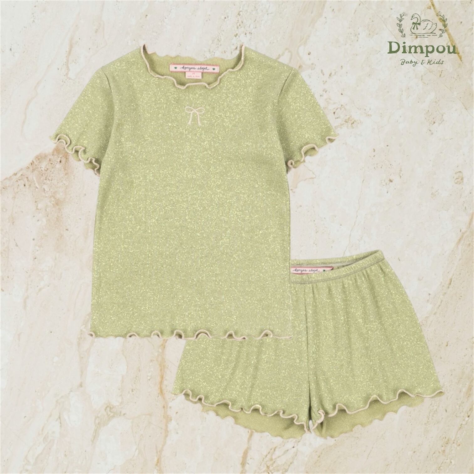 ほんのりきらきらと輝く生地が、とっても可愛い一着。やさしくなめらかな肌ざわりで、思わず触れたくなる心地よさです◎